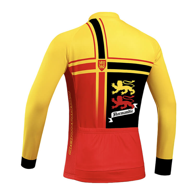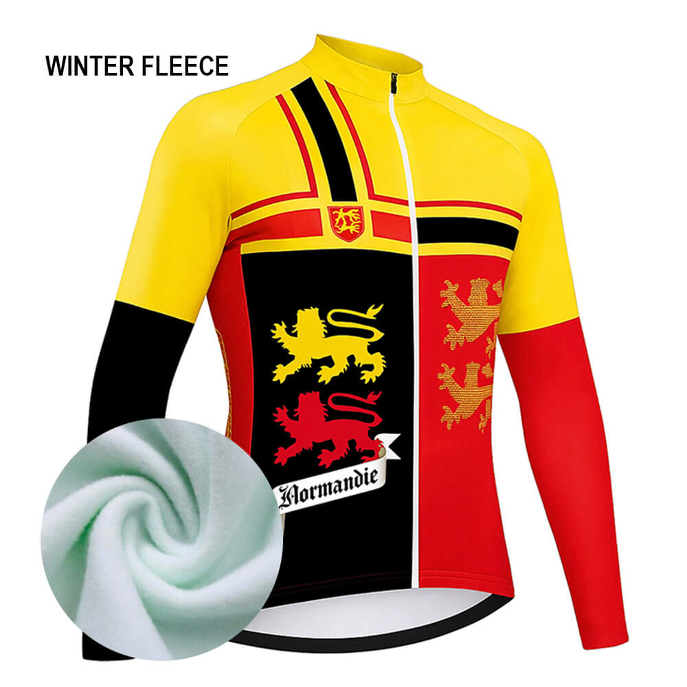 Affirmez vos couleurs avec ce maillot hiver Normandie – un hommage graphique et technique à la région des lions !